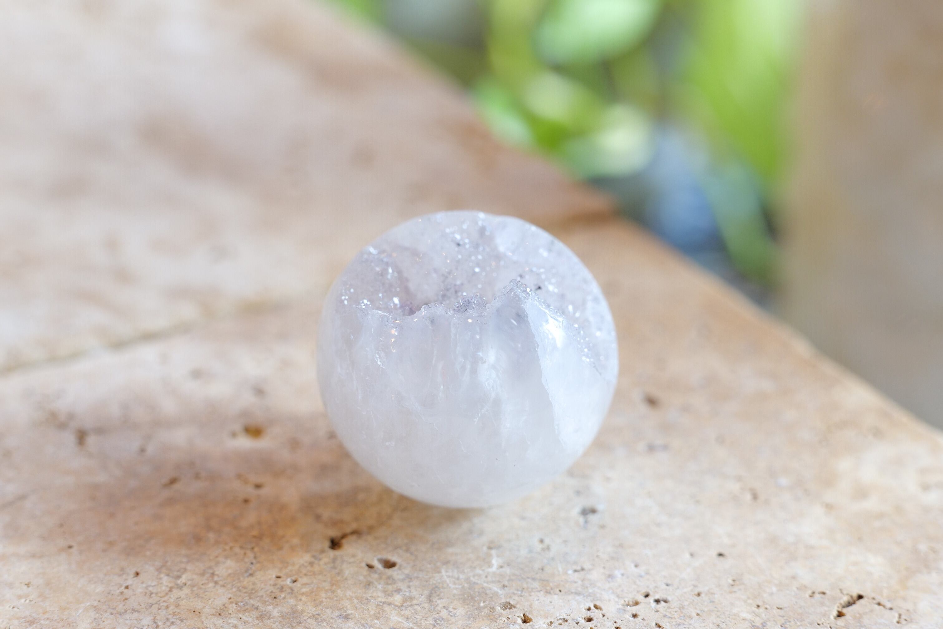 ホワイトアメジストのスフィアを手にすることで、内面の静けさを感じ、リラックスした心の状態を引き出すことができます。この石は、日常生活の喧騒から離れ、自分自身を見つめ直す時間を提供してくれます。心の中心に安らぎを与え、人とのつながりやコミュニケーションを深める力を秘めています。